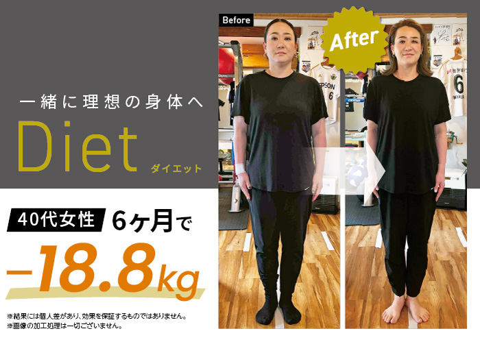 今回ご紹介する40代女性の方は、6ヶ月で−18.8kgという素晴らしい結果を達成されました。